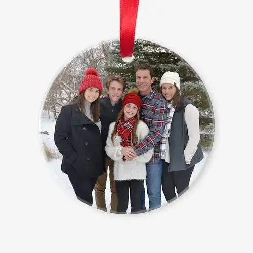 Colors on this unique glass ornament are vibrant and crisp. You can see the image from both sides, with light enhancing the effect. Display your favorite photo on this 1-sided glass ornament. Each ornament comes with your choice of a red, green or white ribbon.